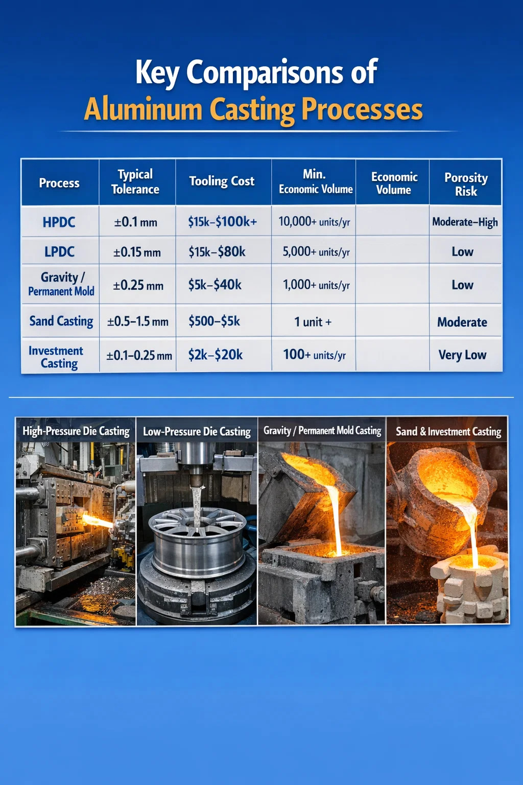 | LPDC | ±0,15 мм | 15 000–80 000 долларов США | 5000 единиц/год | Низкий |