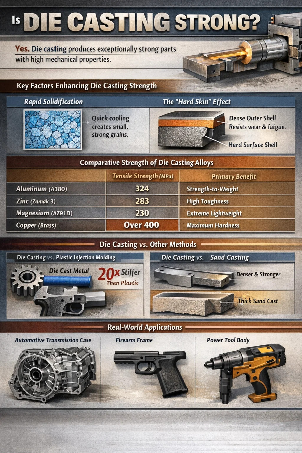 Когда металл замерзает на холодной поверхности штампа, внешняя оболочка становится намного плотнее сердцевины. Эта «охлажденная кожа» действует как естественное подкрепление. Для многих литье под давлением В деталях эта оболочка обеспечивает большую часть усталостной прочности компонента, поэтому инженеры избегают механической обработки слишком большой части поверхности.