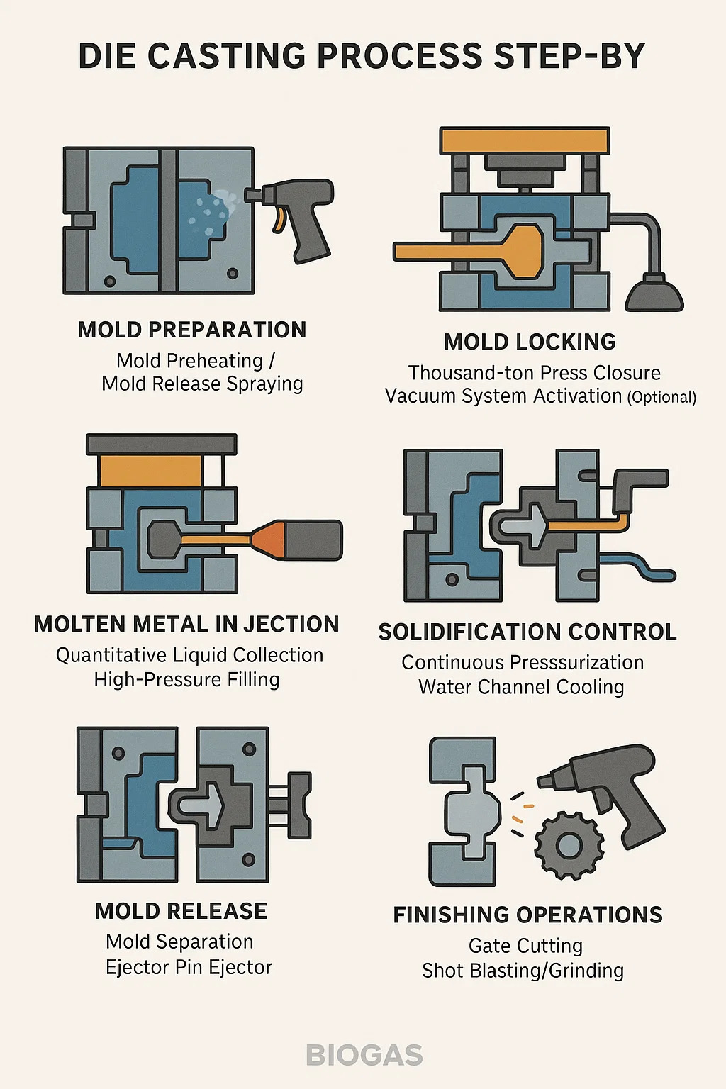 Предварительный нагрев формы: нагрейте стальную форму до 150–200°C, чтобы предотвратить разбрызгивание расплавленного алюминия или его холодное закрытие.